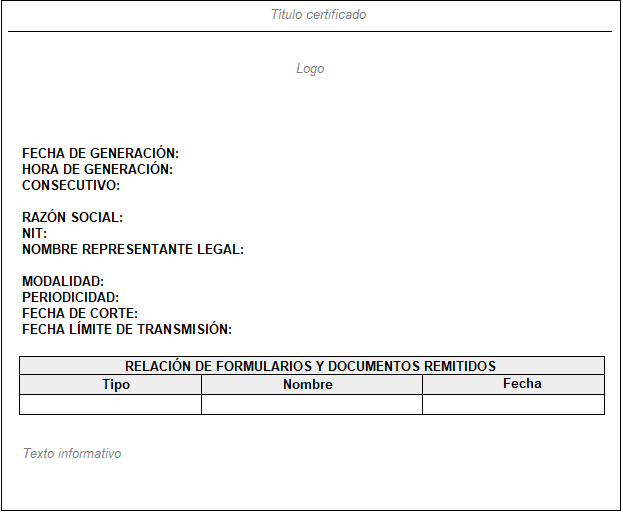 Nota: Los envíos en blanco tienen el mismo comportamiento que los envíos con información, por lo tanto, se valida que también se hayan enviado los documentos electrónicos obligatorios para poder generar el certificado; de no tenerlos, genera el certificado correspondiente. |