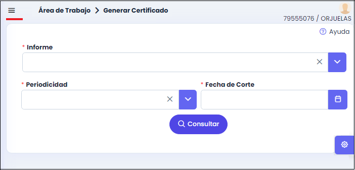 Al hacer clic sobre el ícono del usuario, el sistema despliega las siguientes opciones: Ayuda, Acerca de y Salir.