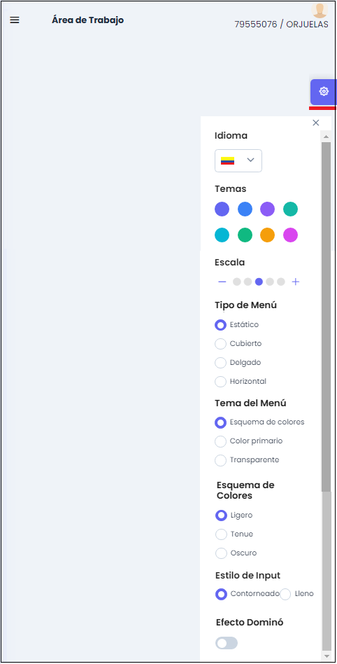 El ícono de configuración le permite al usuario realizar diferentes cambios en la vista de la pantalla.