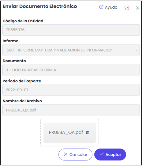 Si no se presenta ninguna validación al hacer clic sobre el botón Aceptar o Enviar en los respectivos módulos, el sistema realiza exitosamente la validación de la firma digital asociada al archivo .str o documento electrónico enviado a través de STORM Web.
